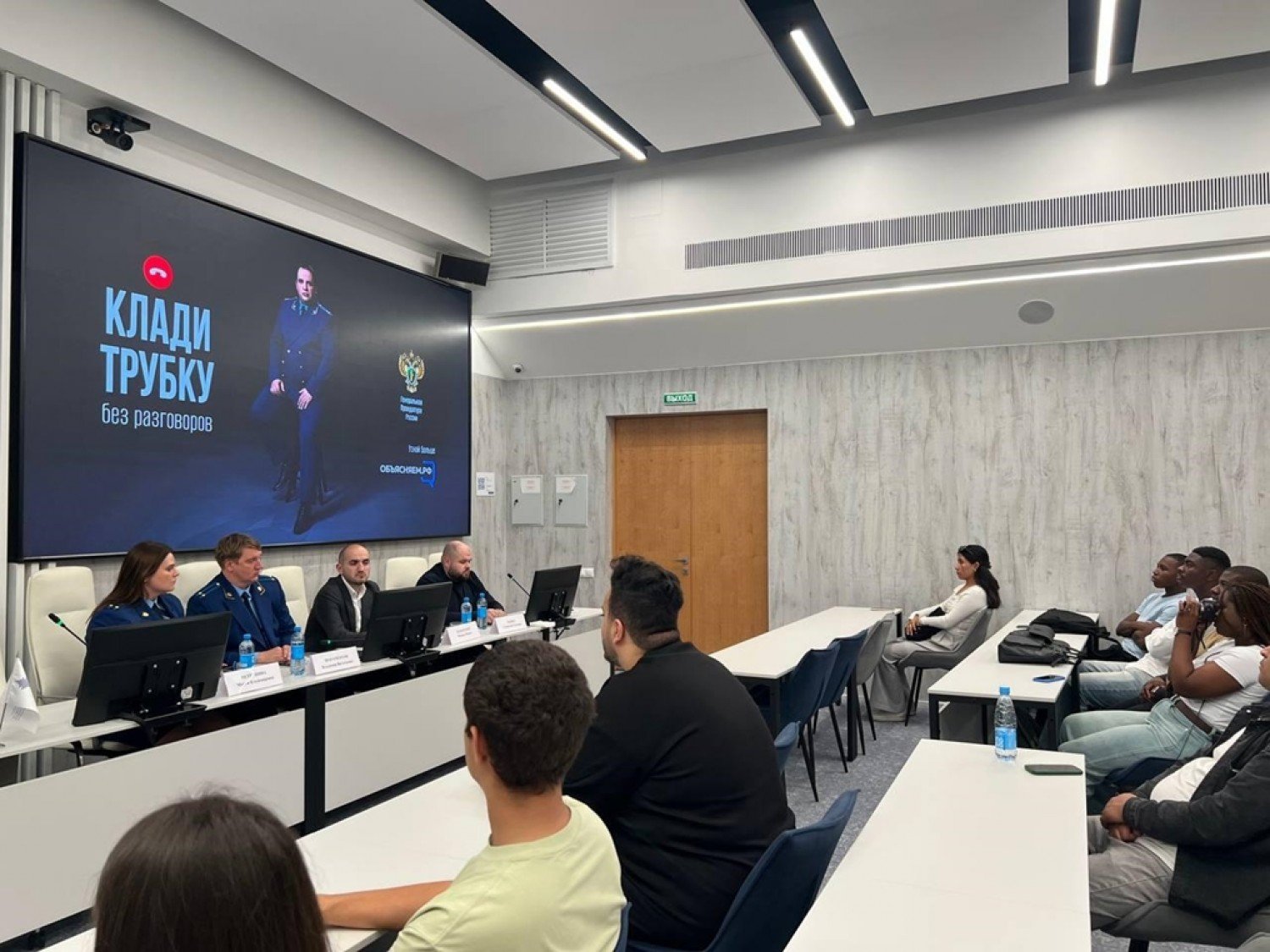 Помимо этого, учитывая актуальность темы мошенничеств с использованием информационно - телекоммуникационных технологий, студентам и педагогическому составу РУДН продемонстрированы разработанные Генеральной прокуратурой Российской Федерации агитационные материалы о способах, схемах, используемых злоумышленниками, доведен алгоритм борьбы с этим и разъяснено, куда следует обращаться при совершении преступления.