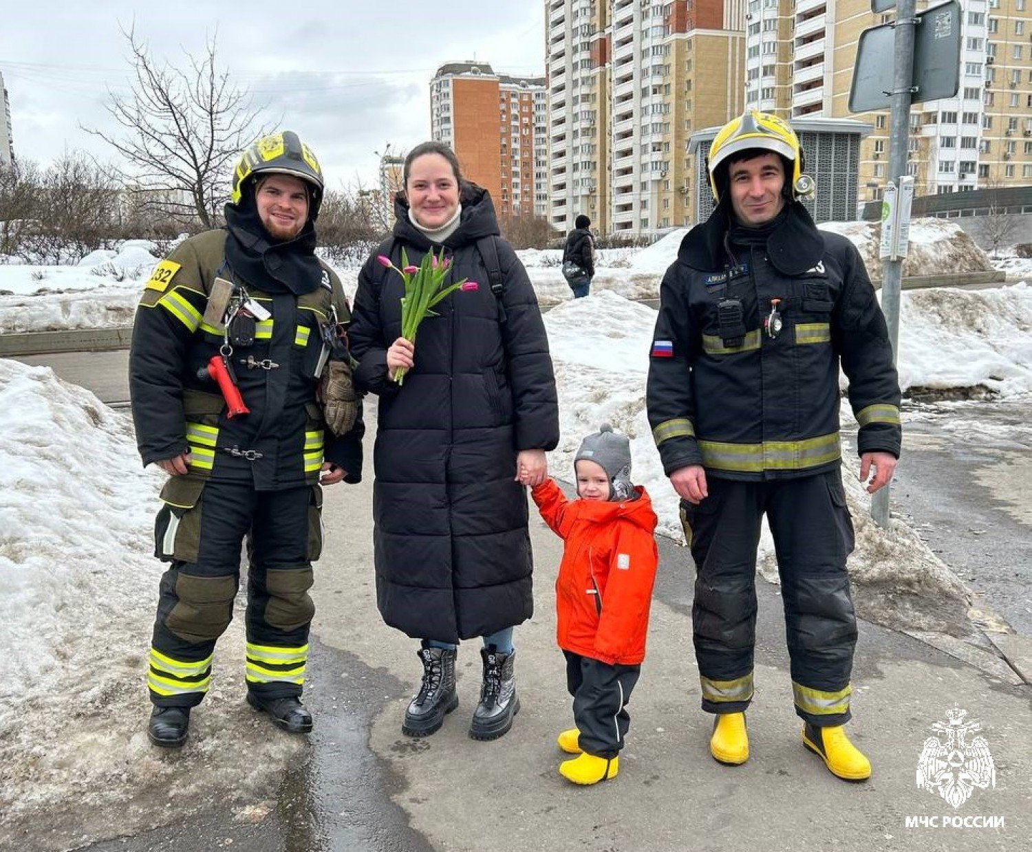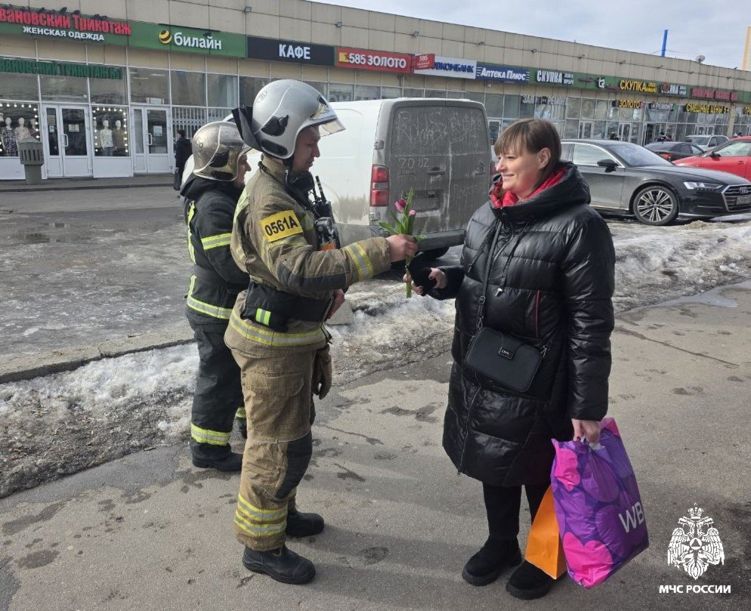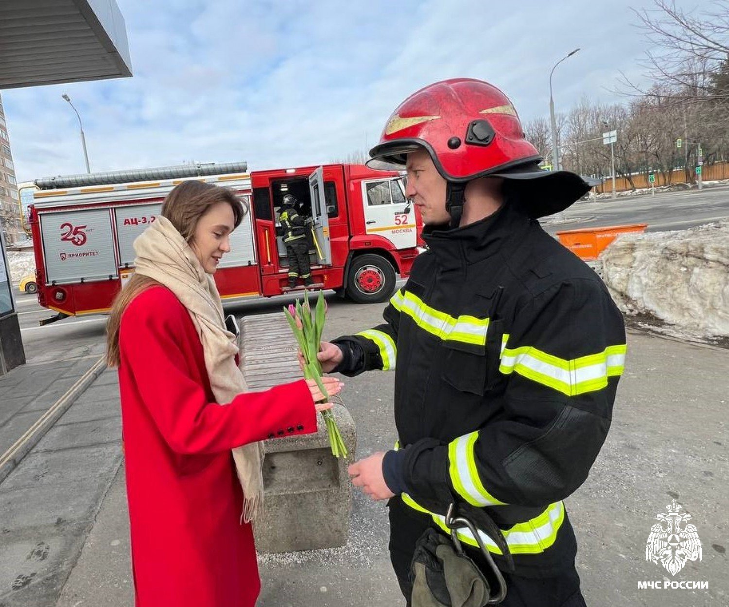 Сотрудники МЧС по ЮЗАО поздравили женщин с праздником